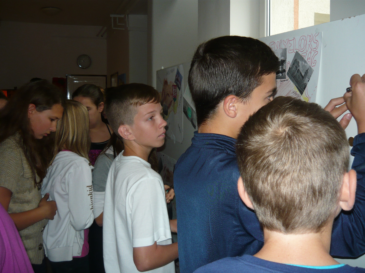 A hazaérkezés után még sok feladat várt ránk. Megcsináltuk a bemutató plakátokat és a tablókat is, melyekre elhelyeztük a hazahozott belepőket, prospektusokat és aranypénzeket egyaránt. Nagy izgalommal várjuk és készülünk a szülőknek tartandó bemutató napra. Az iskola folyosója már teljesen készen áll szüleink fogadására, már csak agyban kell felkészülnünk. Idegenvezetőnket, János bácsit is meghívtuk erre az alkalomra.